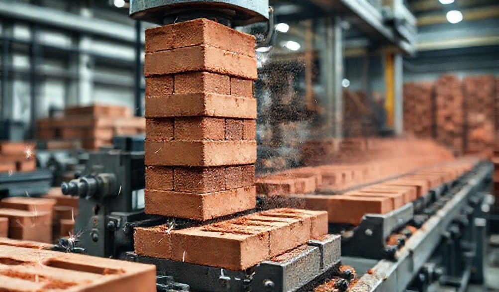 4. Corte: For extruders, the continuous clay column passes through an automatic wire cutter that slices it into individual brick units.
