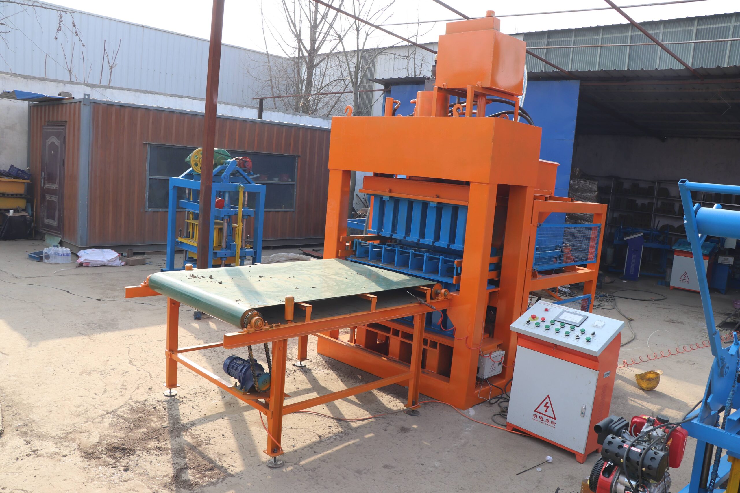 Its characteristics are strong hydraulic pressure and fully automatic operation. The operator only needs to set the program on the control panel, and the machine can automatically complete the entire cycle of: mold box in place → automatic quantitative feeding → vibration preloading → high-pressure hydraulic pressing → automatic demolding and pushing out of brick blanks → mold box reset. Greatly reduces reliance on manpower, typically requiring only 1-2 people to monitor equipment and transport bricks.
