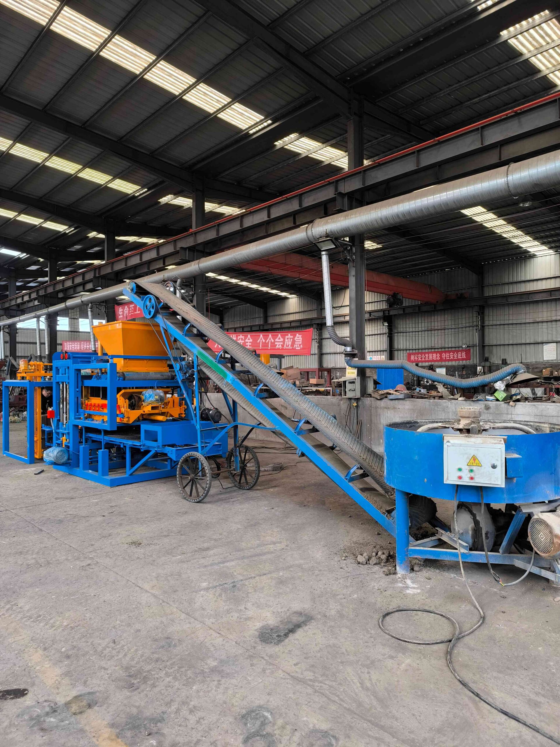 c. Mixer mixing material, then deliver to brick machine by conveyor here need 1 worker