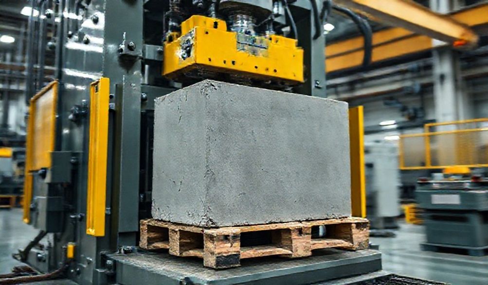 - Qabashada: This is the critical phase. A hydraulic ram descends with immense, programmable pressure, compacting the mix into the mold. This can be combined with vibration for certain products, but the primary force is hydraulic.